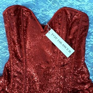 25"-28" Daisy Corsets red sequined corset ruffled mini dress size small medium