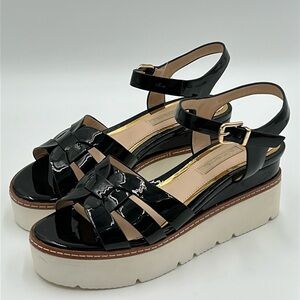 Primadonna wedges, Italian wedge sandals, black strappy sandals, summer platform shoes, size 7 sandals, patent leather sandals, ankle strap wedges, open toe wedges, designer-inspired sandals, casual chic footwear