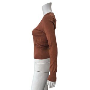$255 rag & bone Brown Lace Knit V-Neck Danielle LS Pullover Slim Sweater size XS