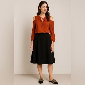 #MichaelKors #ColdShoulder #FallFashion #RustOrange #NWT #ChicStyle #Workwear #TrendyTops #WomenStyle #PoshStyle