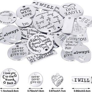 Inspirational words: come with various chic styles, these motivational charm pendants are engraved with different inspirational words, such as "I Love You", "live your dream", "believe in love" and more, combined with creative pattern and shape, can be full of meaningful, express your blessing to your lovers