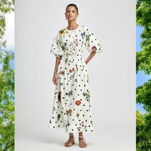 °♡$2,590 NEW OSCAR DE LA RENTA GORGEOUS ECRU MULTI MIDI FLORAL DAY DRESS US 4
