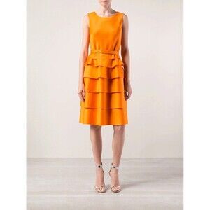 This Tiered Bell Bottom Dress From Oscar De La Renta Brings A Bright Color To A Classic Oscar Shape.