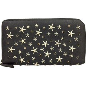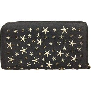 (X2) Jimmy Choo Wallet Long Star Studded Black Leather