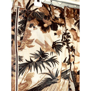 25P Chino by Anthropologie Tropical Bird Pants Dress Stripe Tan Relaxed Stretch Waist is 28"