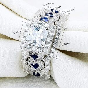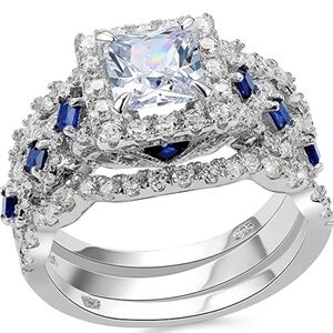 2.5ct Princess Cut 3 PC Diamond Engagement Ring Wedding Band Set Cushion Blue
