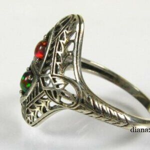 .25ctw Natural Round Cut Dark Opal Victorian Deco Sterling Filigree Ring Size 8