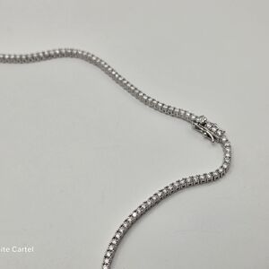 Enhance your wardrobe with this sleek silver tennis chain necklace. A versatile accessory for any occasion.