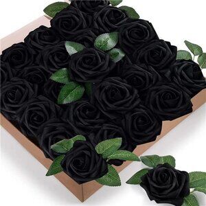 25pcs Artificial Flower Foam Rose, Handmade Big Fake Flower Head (Black)