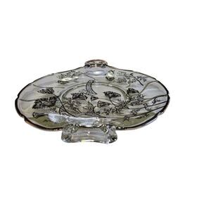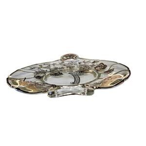 25th Anniversary Platter Handled Plate Silver Overlay Flowers Wedding