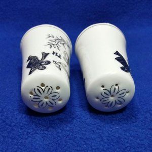 This set is pre-owned and is in excellent vintage condition. There are no cracks or crazing. Both shakers have the stoppers.