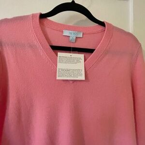 NWT 26 80 Palm Beach Light Pink Cashmere Sweater . Never worn, it came with a minuscule stain in front of the bottom sweater, please look closely at the pictures. Also, it's a light pink, color, the shade of pink might be different in bright light. Very fine cashmere, it's a size small.