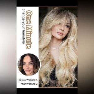 26” Balayage Light Blonde Wavy long Hair Wig & bangs Natural look for da…