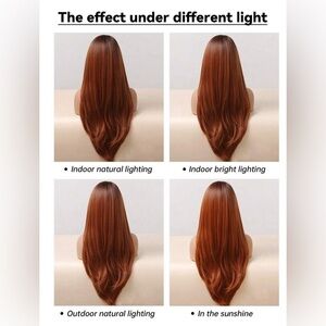 Gorgeous Wig Synthetic High Quality, Human hair appearance, Copper Long Hair Perfect for Daily Wear. made of Synthetic high quality Wig. BRAND NEW! ORDER NOW! Trendy, fashionable, and comfortable Copper color long wavy wig. Made with heat resistant fiber. Can be styled with a curling iron or straight iron under 150F. The cap is adjustable for easy wear and also attached instructions. Front hair mimics the natural hair look, making it look natural. The hair parting is fixed. Its appearance and texture are very similar to real human hair, soft feel, and are easy to comb. You can wear it on any occasion such as formal, casual, entertainment, and when taking photos in your daily life. It can add to your beauty. Condition: brand new / no defects or flaws Material: synthetic wig Color: black Fiber: heat resistant Length: 26 inches Comes from pet free and smoke free home. Thank you for checking out my closet. I would love to accept your offer, so feel free to Send Offers . Bundle for a discount on your Order. Item ships same/next day. If you have any questions please feel free to reach out Tags: High-quality Synthetic Human hair Lace front Full lace Monofilament Heat resistant Costume Bob Pixie cut Long Short Curly Straight Party Cosplay Drag Fantasy Celebrity Custom Hand-tied Machine-made Natural looking Hairpiece Trends , luxurious, Viral hair, hair topper, Layered wig , natural stylist bang. silky touch, soft. Stylist, clip in,