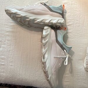 26. Ecco Fluid Form Tennis Shoes / Sneakers in Off White, Cyan, and Peach