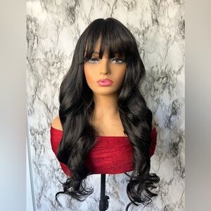 26 Inch Long Wave Curly Black Wig with Bangs density 200%