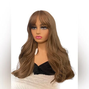 26 Inch Natural Medium dark Ash Blonde Wavy wig with bangs for daily use