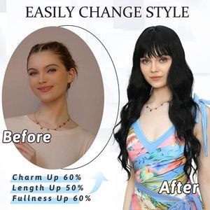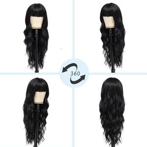【Quality is beyond】The long wavy wig with bangs is made of high-temperature resistant synthetic fiber and stands heat up to 160°c(320°f). Soft and has no shine at all so it looks very realistic.Easy to comb and not easily tangle and hair loss.