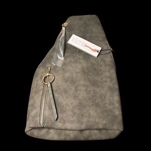 NWT Violet Ray Crossbody Bag (Olive Green). Stylish bag with multiple zipper compartments that can be worn as a crossbody or backpack . Perfect accessory for someone on the go or college student. 100% Polyurethane. Wipe clean with damp cloth.