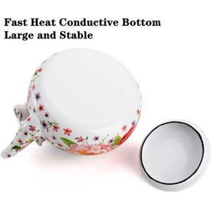 -- Easy to Use and Functional: This decorative floral enamel teapot can be applied to the stovetop, electric stove, halogen stove, induction cooktop, or gas stove. Please do not use it in a microwave or oven! The wide-mouth design makes it easy to clean. Ideal for boiling water, making tea, coffee, serving hot water, drinks