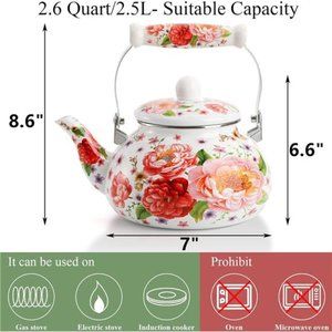 -- Retro Classic Style and Elegant Gift: Our large porcelain enameled teakettle is designed with exquisite red flower patterns on the surface and handle, which makes this stove top teapot the unique and graceful decoration for home, kitchen, restaurant, hotel, and office. Giving an atmosphere of retro. Also the amazing gift for housewarming, holiday, party, wedding, tea lovers, families, friends
