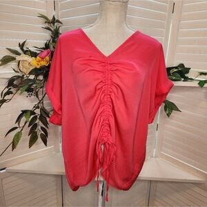 SHE & SKY RUCHED PINK PLUS SIZE BLOUSE NEW