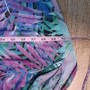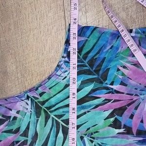 green,purple,black and blue palm leaf sheer soft swim cover up is a tank dress