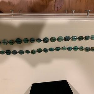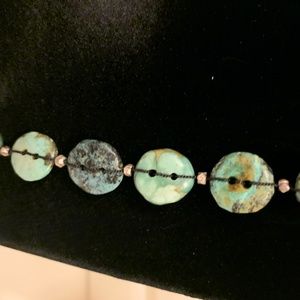 26" Turquoise button bead necklace strung on black cord. Sterling spacer and sterling toggle clasp. Unique handmade design.