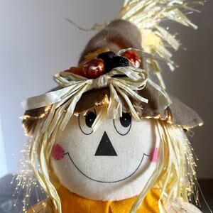 Adorable Vintage Frankie Fiber Optic Sitting Fall Scarecrow with Thanksgiving vegetation decor. Comes with adapter and is in excellent overall condition but does have minor signs of wear, however shows no signs of heavy wear such as staining, holes or large areas of damage. Works well and changes an array of colors. The power A/C block does make a bit of noise but has ran well and shown no issues when used on other fiber optics from my personal collection.