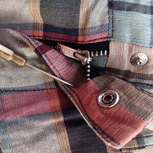 26 Waist X-SMALL True Vtg 1970s M ens IVY LEAGUE PLAID Steel Zip Shorts