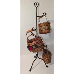 26" Wrought Iron Stand 4 Baskets Christmas Hand Woven Tree