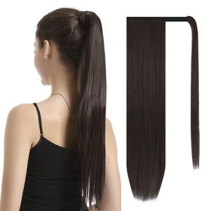 Straight wrap around ponytail hair extension. Length: 26 inch; Weight: 4.23 oz. Add the length, volume and fullness to a ponytail or a bun just in seconds. Smooth and less tangled, not heavy.