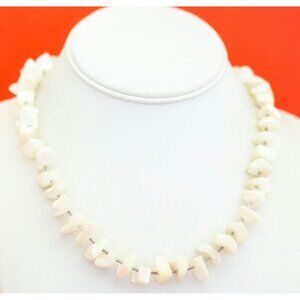 26 inch, Vintage Mother of Pearl White Beaded Necklace - F44
