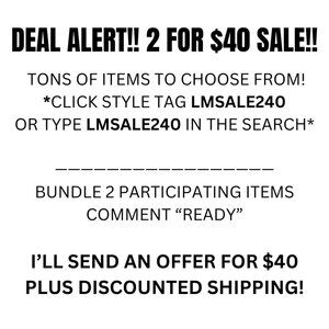 DEAL ALERT! Check out this awesome SALE! BUNDLE THIS ITEM WITH ANOTHER 2/$40 ITEM IN MY CLOSET, COMMENT "READY" AND I'LL SEND $40 OFFER WITH DISCOUNTED SHIPPING! There are hundreds of participating items to choose from. To find these items, type LMSALE260 in the search bar on Poshmark or click the LMSALE260 style tag on this listing!