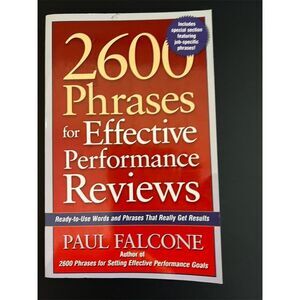 No brand 2600 Phrases for Effective Performance ReviewsNo brand by Paul Falcone is a paperback guide focused on performance reviews, human resources, and management. Published by No brand, this nonfiction book is written in English and spans 288 pages. ISBN: 9780814415573. Pre-owned condition.No brand
