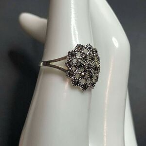 2613 Sterling Silver 925 FLower starburst marcasite ring sz 7