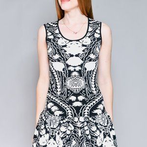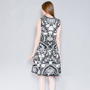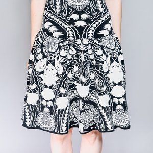 Marchesa Voyage black and white floral knit Rorschach knee-length sleeveless dress. Size XS.