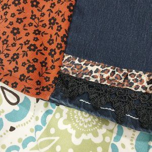 2632 Size 16New Directions Stretch Upcycled Bell-Bottoms. Waist 18" inseam 31" rise 11". The colors are Rust and black.