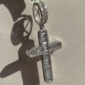 Brand New Cross 2.65CT Diamond Pendant 11.9g 14KT White Gold. Baguette cut.