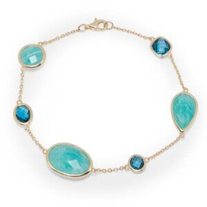 $2,650 New Authentic Effy 14K Yellow Gold London Blue Topaz & Amazonite Bracelet