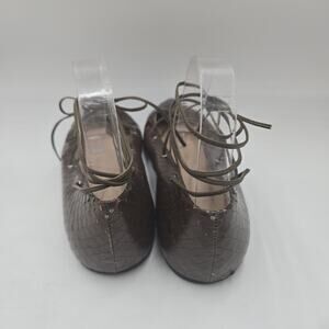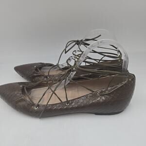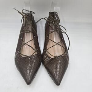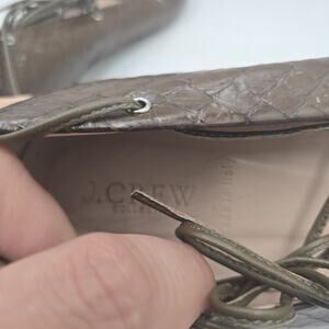 $268 J Crew Collection Snakeskin Lace-Up Flats Size 11 Olive Shoes Pointed Toe