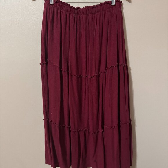 โจ269 โ Old Navy Tiered Midi Skirt | Boho Cottagecore Maroon โจ
