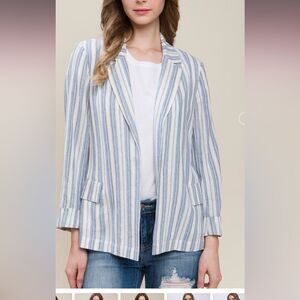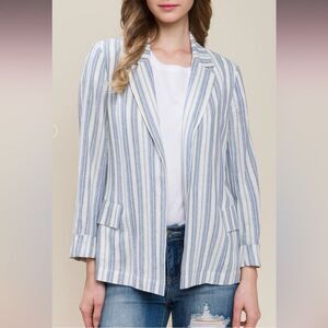 New with tags. Fabulous Linen Stripe Roll-Sleeve Blazer