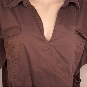 26W 28WCATO BROWN WRAP BLOUSE TOP COLLAR SHORT SLEEVE STRETCH COTTON BLEND