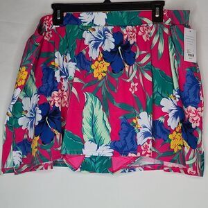 26W Skirted Swim Brief Power Mesh Side Slit Red tropical, NWT, Lane Bryant Cacique Swim, power mesh lining lightweight. Built in swim brief, skirt connected. Measurements for reference only approximately waist to hem center 16" waist across 20" weight 11oz
