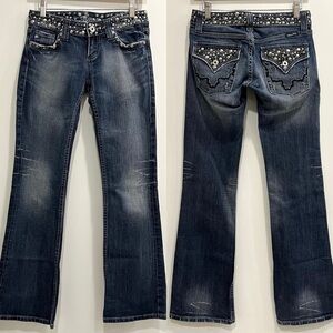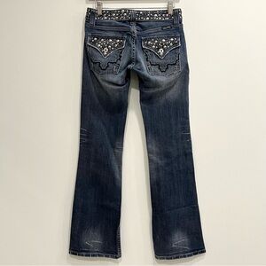26x30 Miss Me Women's Low Rise Boot Cut Jeans - Dark Blue with Silver Accents