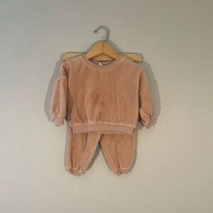 $61 retail price quincy mae and it's a matching set! velour sweatshirt and joggers (see similar stock photo)