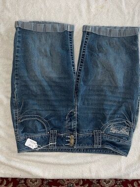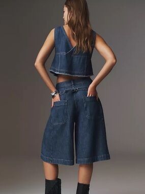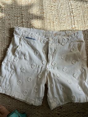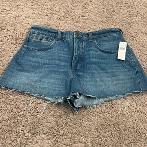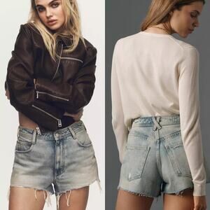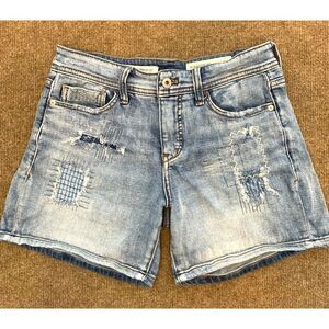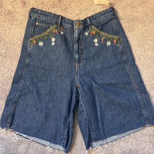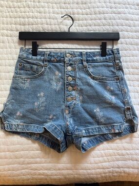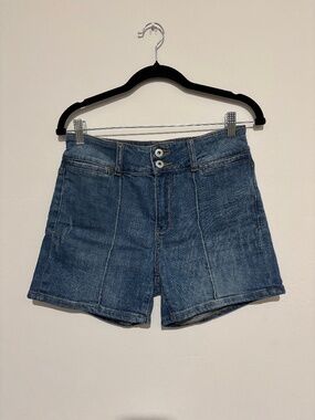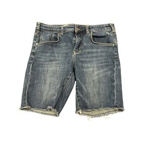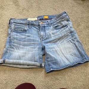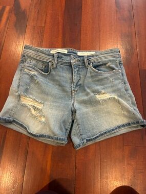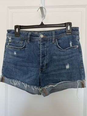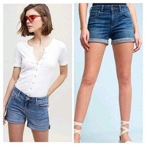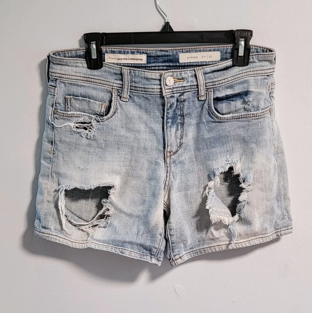 Distressed denim shorts from Anthropologie brand Pilcro and the Letterpress. Rise is 10" wich is often considered a high rise in smaller sizes, but is closer to a mid rise in larger sizes. Functional pockets. Excellent condition.