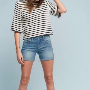27 Anthropologie Pilcro Mid Rise Denim Light Wash Distressed Jean Shorts Boho