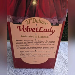 27" Deluxe Velvet Lady Animated Caroler Tested And Working Holiday Velvet Lace